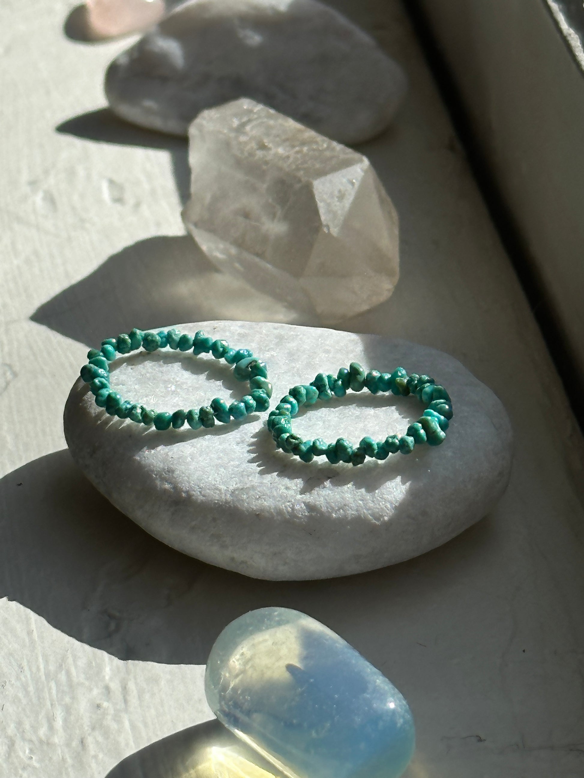 Turquoise Beaded Rings in sizes 5,6,7 & 8. These rings are designed to evoke a sense of movement, as the stones dance around the band with each gesture. They are great for stacking or to wear alone.